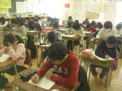 学習取得状況の把握と基礎・基本の定着をめざし、学期初めの1時間、みんなで東京ベーシックドリルの問題に挑戦です。冬休みの課題として出された問題と似た形での確認テスト(診断シート)です。自分で取り組んだ成果があらわれるとよいですね。