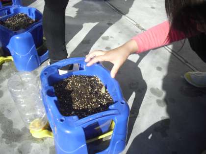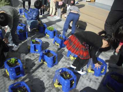 植木鉢に植えたチューリップやスイセンの芽が顔を出し、育ち始めています。