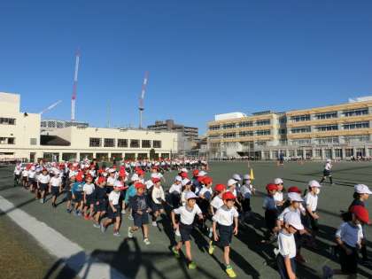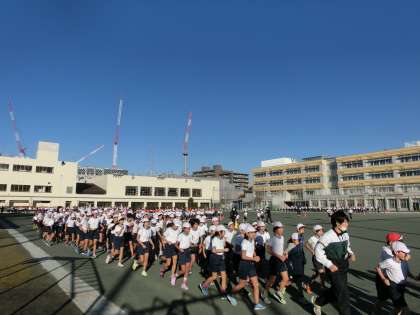 真っ青な冬晴れの空の下、体育朝会が行われました。これから始まるマラソン月間へ向けてのオリエンテーション的なプログラムでした。初体験となる1年生も元気いっぱい走りきることができましたね。来週から本格始動となります。マラソンカードのコンプリートをめざして、一人ひとりのがんばりに期待していますよ。