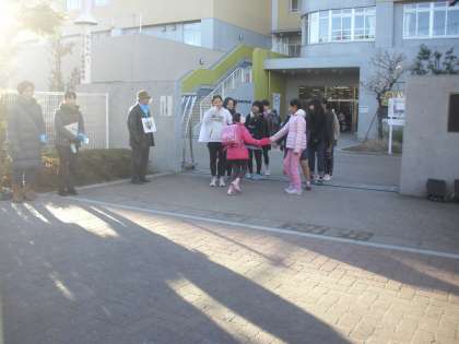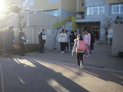 今日もあいさつでの朝の幕開けです。地域の方と一緒に校門での声掛けです。