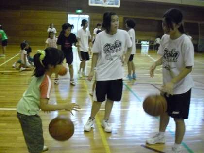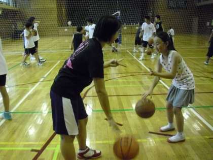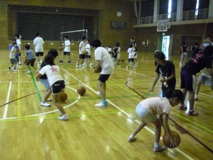体育館では、芦花中学校のバスケットボール部が小学生にバスケットボールを教えてくれるバスケット教室がありました。ボールに慣れるためにドリブルに時間をかけます。中学生がやさしく声をかけてくれます。ボールだけでなく会話も弾みます。中学生がとてもよい表情で小学生とかかわってくれていました。