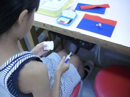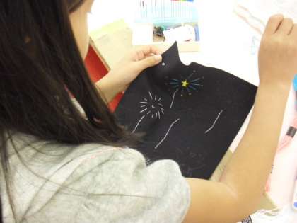 手芸教室の2回目がありました。参加している小学生は小物入れづくりと花火の刺しゅうに取り組んでいました。自分の作品が少しずつ出来上がっていく様子を楽しみながら作業を進めていました。中学生もぬいぐるみなど、自分の作品を作りながら小学生を見守ってくれていました。