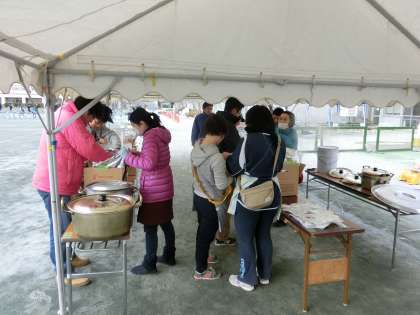 朝早くから保護者、地域、大勢の皆様のお手伝いをいただきながら、お楽しみ会が進んでいます。炊き出しや餅つきをはじめ、子どもたちを見守る芦花の温かな輪がそこにはあります。
