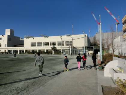 が、始業前の校庭には、元気な子どもたちの姿がたくさん! 持久走、ボール遊び、長縄・・・陽気に関係なく展開する、見慣れた芦花小の光景が広がっています。