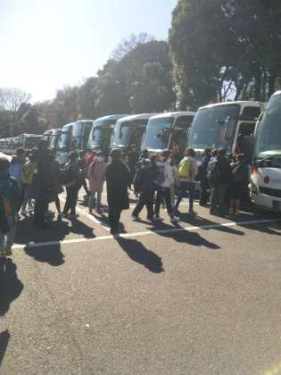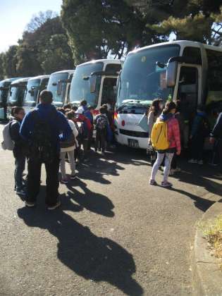 お昼を食べ、科学技術館を出て、これから製鐵所に向かいます。朝早くのお弁当作りありがとうございました〜