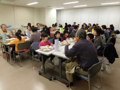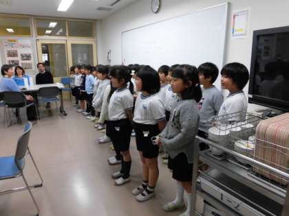 1月末から2月上旬にかけて、1年生ではクラス毎にふれあい給食を実施しています。いつもお世話になっているおじいちゃん、おばあちゃんを学校にご招待して、一緒に給食をいただきます。昔の給食についての話を聞いたり、1年間の学習の成果を発表したり、とても充実した時間を過ごしています。