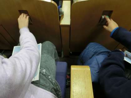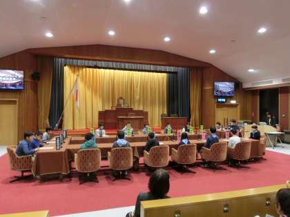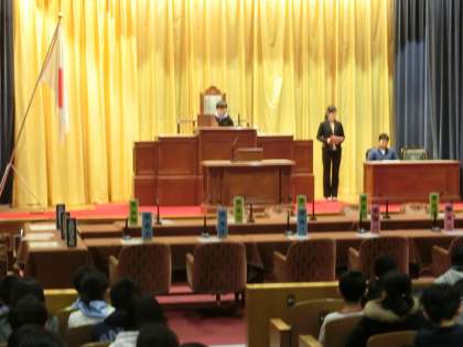 参議院特別体験プログラム、テーマは「子ども読書活動推進法案」です。集まった3校の6年生全員がここでは議員、法案について考え、賛成か反対かの意見をボタンで表明しました。結果はなんと否決! 現実は、可決されている法案なのですが・・・。