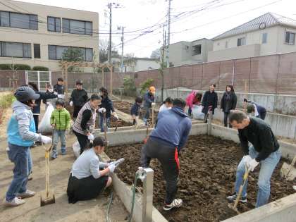 学級園には畝もお目見え、整備はバッチリ! 新年度、順調に栽培活動が開始できそうです。皆さんの大活躍のおかげで、予定より一時間近く早く作業は完了しました。平成29年度の準備も着々と進んでいる芦花小学校です。
