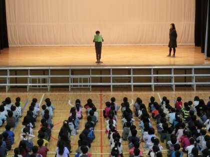 先週、校長先生がお話くださったテーマ「異文化理解」の続編として、今朝は2学期オーストラリアへ区を代表して派遣された5年生から、詳しい報告がありました。広い視野をもつ国際人の育成が求められている現代ですが、国際理解で大切なことは、まず自国の文化や伝統に対する正しい認識です。「灯台もと暗し」にならぬよう、日本にもしっかりと目を向けていってほしいものです。