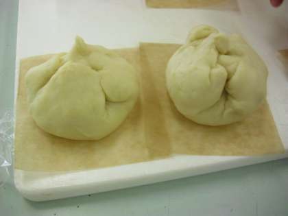 包み方を講師の先生に教えてもらって、具を包みこみます。外側の方から包みこむように……みんななかなか上手です。どこから見ても、立派な肉まんです。