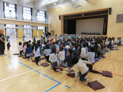 明日は6年生を送る会です。最終のリハーサルが行われている会場をのぞいてみました。画像は1・3・5年生の様子です。各学年、それぞれ楽しそうな演出を準備しているらしく、「ずっと参観していたい!」という気持ちに。しかし、お楽しみは本番にとっておくことにして、そそくさと体育館をあとにしたのでした。