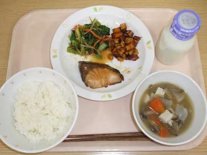 今日は、“出世魚”のブリを照り焼きにしていただきました。九州産の生ブリを使い、身はやわらかく、とても脂がのっていて、ふっくらと焼き上がっていました。