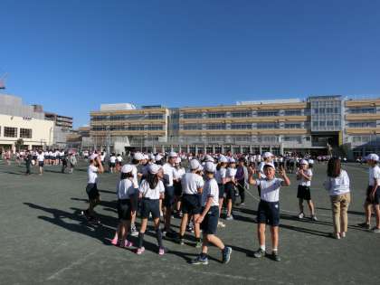 今朝の校庭はいつも以上に活気があふれています。そう、今日は体育朝会で長縄記録に挑戦するからです。まさに「決戦の金曜日」。今まで練習してきた積み重ねを発揮したいという子どもたちの思い、発揮させたいという先生方の願い、どちらも叶うことを祈るばかりです。