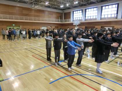 6年生は早くも中学校デビュー。今朝は、中学の朝会に参加しました。入学よりも一足お先に、中学生気分を味わいました。