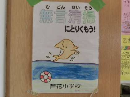 掃除ロッカーに、このような掲示物が貼られている芦花小学校です。