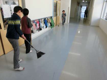 掃除の時間、最高学年への進級が間近となった5年生の教室をのぞいてみました。今日は自分の仕事を着々とこなしていましたが、6年生になったら、新1年生のために掃除のお助けマンに変身します。張り切って活躍する様子が、今から目に浮かびます。期待していますよ。