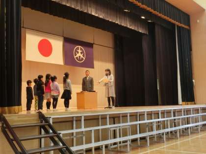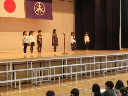 児童代表の言葉は1年生。「できるようになったこと」をテーマに堂々と発表、しかも原稿なしとは凄いっ!! めざましい成長ぶりの一端を垣間見た思いがしました。