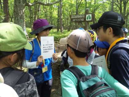 いよいよ小田代が原ハイキングです。グループ毎に時間差をつけて出発です。たくさんの緑に囲まれ、おいしい空気の中、友達と過ごす貴重な時間です。途中のチェックポイントにいる先生方には本当に久しぶりにお会いするような気がします。