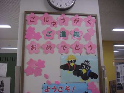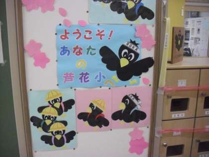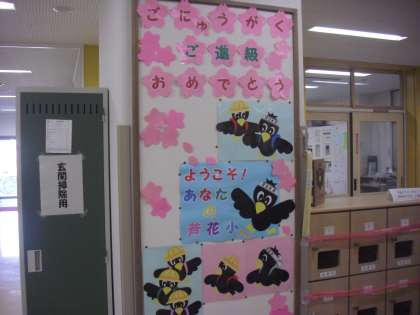 始業式の後、新1年生の入学式を行いました。最高学年となった6年生の校歌の歌声が体育館に響き、また2年生のすてきな歓迎の出し物で、あたたかな雰囲気に包まれたひとときでした。学校の昇降口にも、芦花サポーター(掲示作成委員ボランティア)の皆様による、「入学おめでとう」の掲示が・・・多くの方々に支えられている芦花小学校・・とても嬉しく思っています。いつもありがとうございます!!