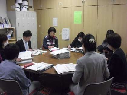 今日は、さっそく先生方の校内研究についての話合いが、学力部会、体力部会、こころ力部会、ふれあい力部会、そして特別支援教育部会に分かれて始まりました。