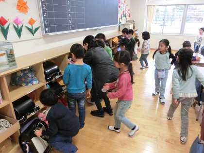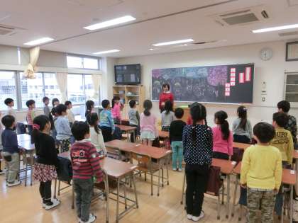 ランドセルのロッカーへのしまい方、朝のあいさつ、危険なことや人を傷付ける行為に対する指導が行われていました。