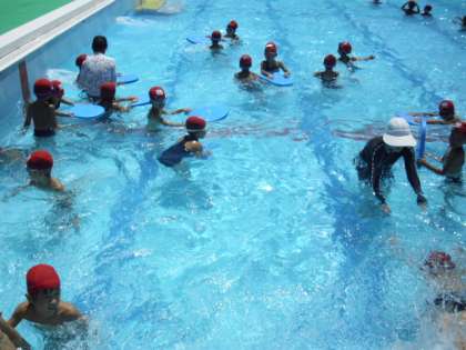 2日から再開した水泳教室。今日は第5回目を迎えました。暑い日差しの中、子どもたちの声がプールに響きわたりました。日光林間学園を終えたばかりの6年生も約20名ほど参加しました。今週末の検定に向けて、一生懸命に泳いでいました。しっかりと手で水をとらえ、大きなフォームで伸びのあるストロークが泳法の基本です。自分の目標の級に合格できるようにがんばっています。