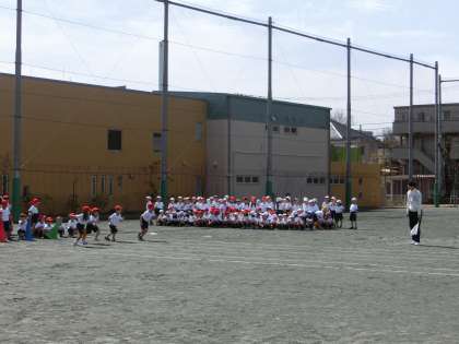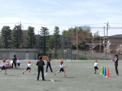 1年生のみんなも広〜い校庭で、のびのびとかけっこに挑戦していました。