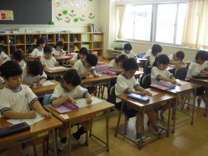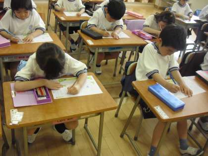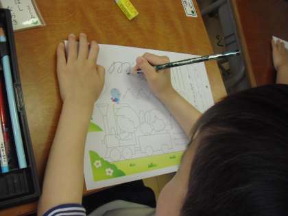 今週は1年生にとってペンシルウイーク・・・線のかき方の練習です。まっすぐにかいたり、くるくる回したり、かくかく曲がったりと、楽しそうに学習していました。上手にできましたね・・・