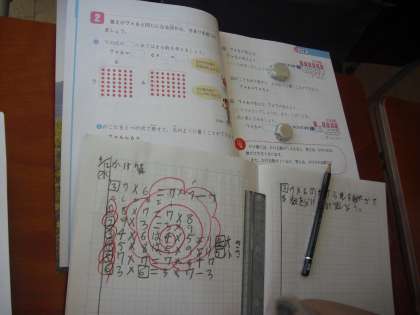 今日は交換法則や乗法のきまりを発見したりしていました。ノートもしっかり書くことができていましたね。3年生の先生が、2年生のかけざん九九をしっかり学習したおかげだと、皆さんの今日の学習の状況を把握しながらほめていましたよ!!積み重ねが大事です。これからもわからないことをそのままにせず、しっかり復習してぐんぐん力をつけていきましょうね!