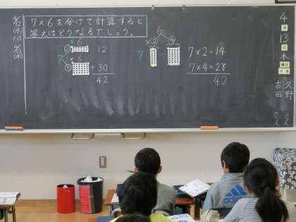 2年生のときに一生懸命マスターした、かけ算九九を応用した学習に取り組んでいます。スラスラと九九の答えが飛び出してくると、発展学習もスラスラと進みます。それほど難易度の高い内容ではありません。九九の定着が問われてくる場面が今後さらに多くなっていきます。自信がないお友達は、もう一度九九の暗唱やバラバラ九九の復習を行ってみましょう。困ったときは、常に基礎基本に立ち返っていけばよいのです。