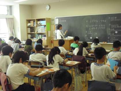 4年生の習熟度別グループに分かれての学習です。今日は数直線上での大きな数の表し方の表し方の学習でした。コースごとに学びのスピードに応じた指導で基礎基本の確実な定着を進め、算数の学習が「できた」「わかった」「楽しい」と感じる子どもたちを増やしていきます。わからないことをそのままにせずしっかり復習もしていきましょうね。