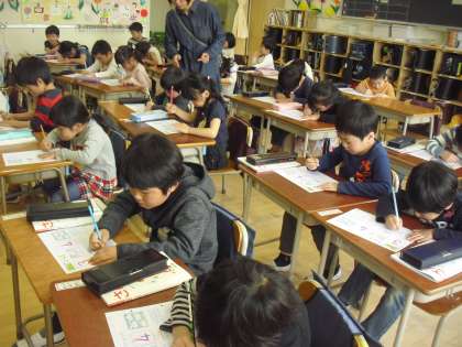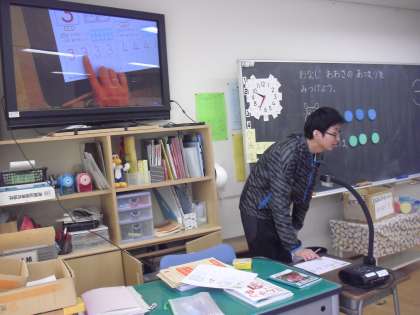 大型テレビに子どもたちと同じプリントをうつして、今日は数字のかきかたも練習しました。先生と一緒に空中に書いてから、プリントで練習・・お手本のようにしっかりかけたでしょうか・・・