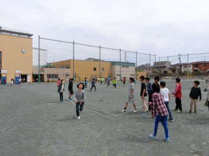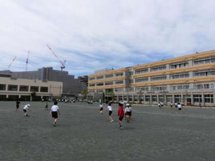 朝のうちに雨はあがったものの、校庭の状態が悪く、中休みは内遊びとなりました。ようやく昼休みに使用が解禁となり、外遊びを待ちわびていた子どもたちが大喜びで出て行きました。汗びっしょりになって、友達との交流を楽しんでいました。