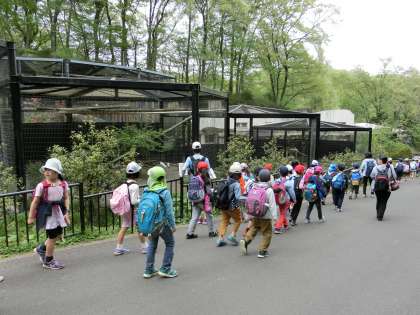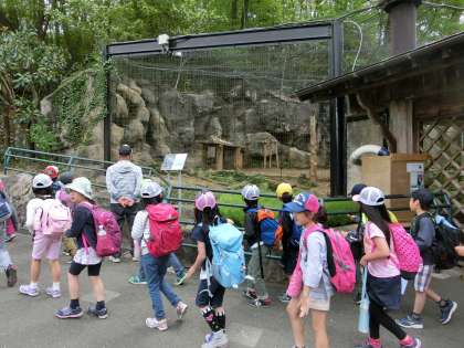 グループで巡れなかった動物を見ながら、学校へと向かいます。