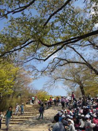 班ごとのオリエンテーリングを開始し、早い班から頂上に到着〜感想を聞くと、眺めがいいです!がんばったかいがありました〜と話してくれましたよ。