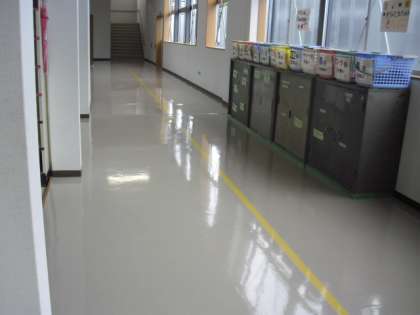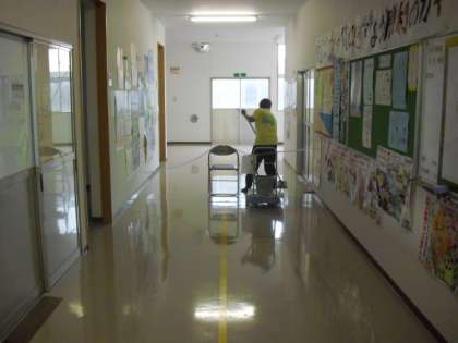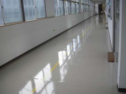 午後、昨日汚れを落とし終わっていた3年生教室前の廊下のワックス掛けをしました。丁寧に2度塗りです。これで1階のワックス掛けの作業は終了しました。ピカピカの廊下は気持ちまでさわやかにしてくれます。主事さん方、連日ありがとうございます。