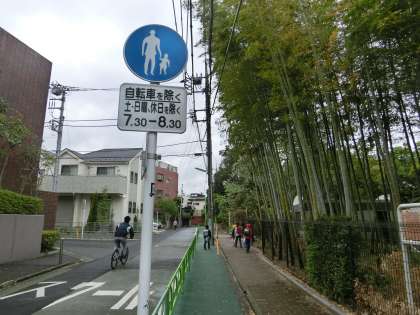 風情ある竹林脇の小道、環8からの遊歩道、あちこちに子どもたちの姿を見かけます。