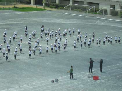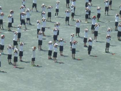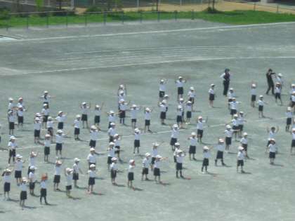 1年生6クラスが校庭に集合し、運動会練習を開始しました。1か月の限られた練習の中で、集団での行動を学習していきます。どうぞ運動会当日をお楽しみに・・・・