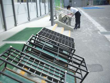 今日は全学級の傘立てをきれいにしている主事さん方。汚れを落とし、水で洗い流して乾かしているところです。清掃、修理、整備、安全指導等、一日のうちに様々な仕事をして2学期に向けての準備を進めています。目立たないところで、子どもたちの学校生活を支えています。