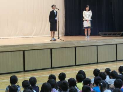 校長先生からは、5月の人格の完成の取組『思いやり』についてのお話と、2年4組で新担任となる藤田先生の紹介がありました。