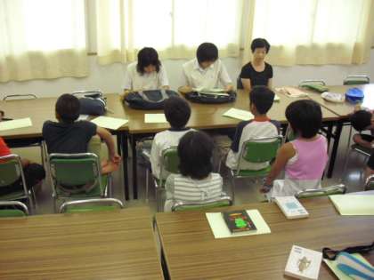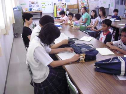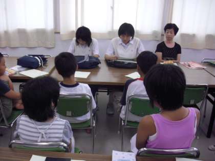 後半は、滑舌の練習で早口言葉を言ったり、6年生の教材の文章を音読したりしました。そして、中学生による「どんぐりと山猫」の読み聞かせがありました。中学生は小学生に楽しんでもらおうと、この日のために練習をしてきたそうです。落ち着いた態度で読んでいました。