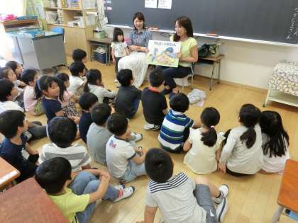 大型絵本、アプリを活用した読み聞かせなど、様々なスタイルで繰り広げられています。お父さんの姿もお見かけしました。これからもよろしくお願いします。