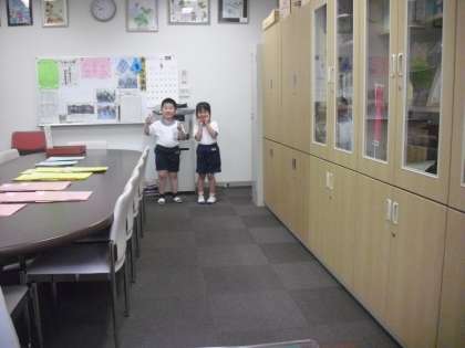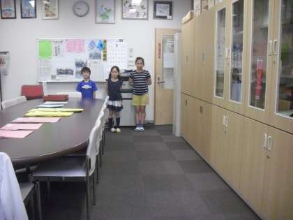 学びのある楽しい集会のあと、各クラスの出席状況を届けに来てくれました。