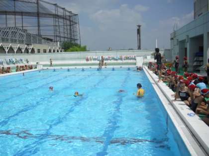 検定には、100名を超える子どもたちが参加しました。担当の先生や保護者の方に励まされながら25mを泳ぐことができた子どもたち。もう少しで目標が達成できそうな子どもたち。友達も「がんばれ」と大きな声援を送ります。2学期の体育の授業で、水泳教室での成果を生かしてほしいです。