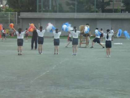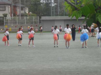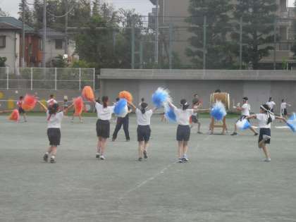 6時間目終了後の時間を活用して、応援団の練習です。ポンポンを使って大太鼓のリズムとともに応援団のメンバーが軽やかな動きで取り組んでいました。