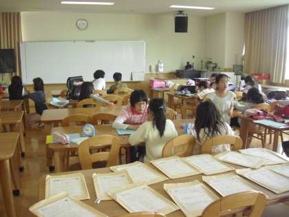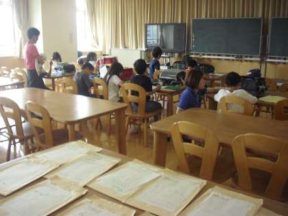 高学年のクラブ委員会活動の時間を使って、2,3年生の基礎基本の着実な定着をめざす放課後補習教室、「寺子屋クラブ」を実施しています。それぞれの児童が自分の学びのペースにあわせ、わからない時には先生に教えてもらいながら問題に挑戦します。そしてその場で芦花サポーター(丸付け隊)のお母様方に答え合わせをしてもらい、間違いをしっかりなおして進みます。