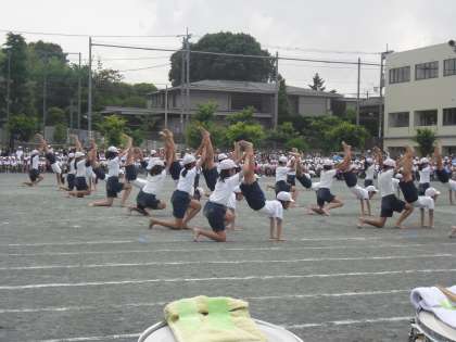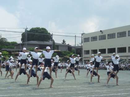 6年生の組体操・・小学校生活最後の運動会の取組に向けてのメッセージも語られました〜。