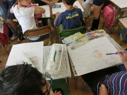 教室に入った瞬間、そう勘違いしてしまうような光景でした。メンバー全員が筆を手に、ポスター描きに全力投球でのぞんでいました。果たして、全校へどのような発信をしてくれるのか楽しみですね。
