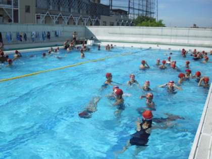 5・6時間目、6年生は9日(木)に行う水泳記録会に向けての練習をしました。気温も一番高かった時間帯です。今日の取り組みを経て、最終的なエントリー種目を決めます。写真は、練習を終えてリラックスして泳いでいるところです。