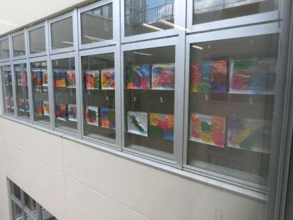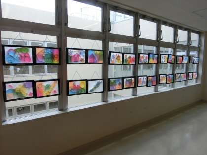 校内で3年生の作品に出会いました。学校公開の折、ご覧いただければと思います。他にも様々な掲示物がありますよ。